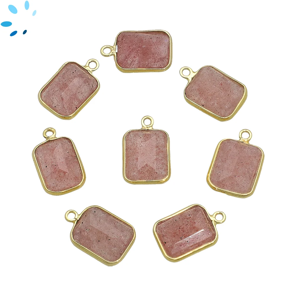 Strawberry Quartz Rectangle Bezel Pendant Charm 14x10mm - 18k Gold Plated Sterling Silver - Set of 4