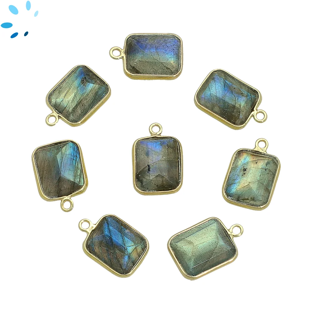 Labradorite Rectangle Bezel Charm Pendant 14x10mm - 18k Gold Plated Sterling Silver - Set of 4