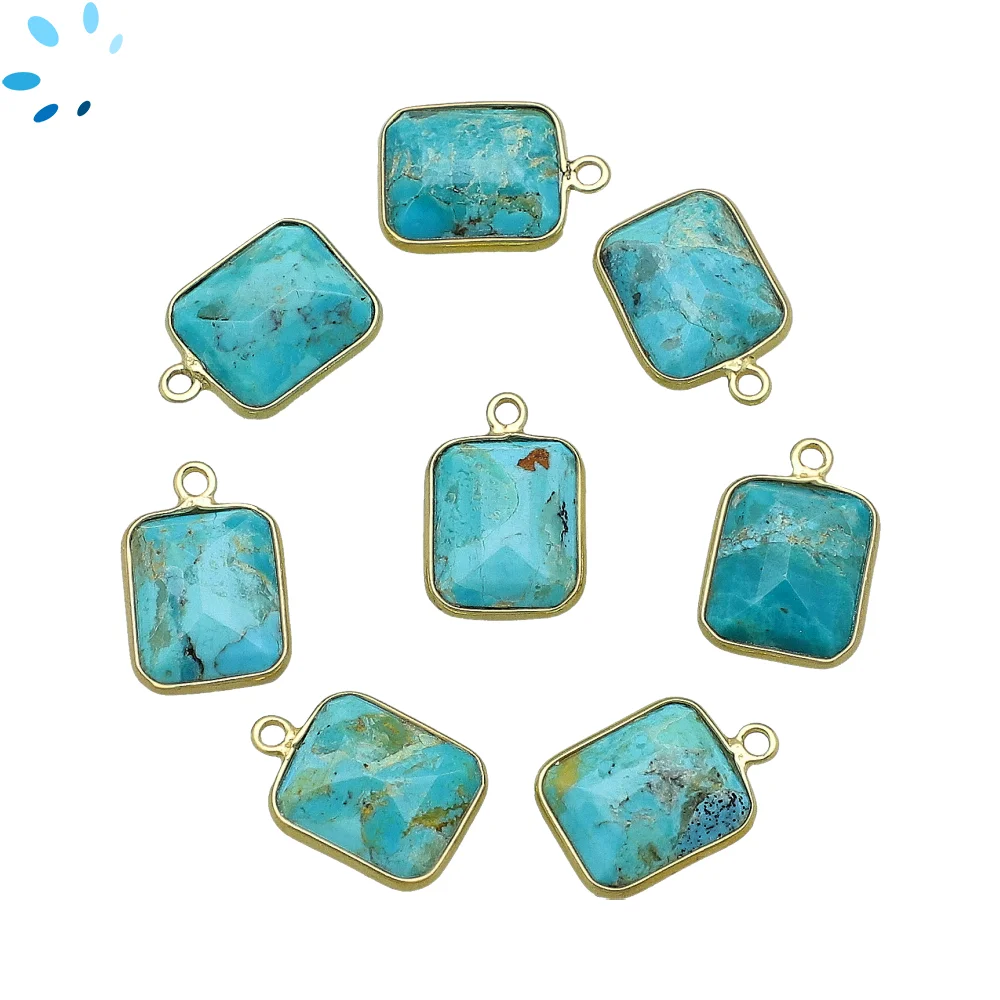 Turquoise Rectangle Bezel Pendant Charm 14x10mm - 18k Gold Plated Sterling Silver - Set of 4