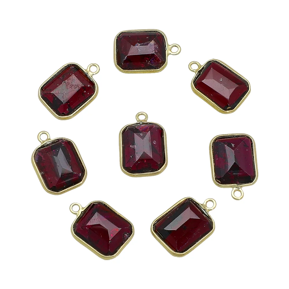 Garnet Rectangle Bezel Pendant Charm 14x10mm - 18k Gold Plated Sterling Silver - Set of 4