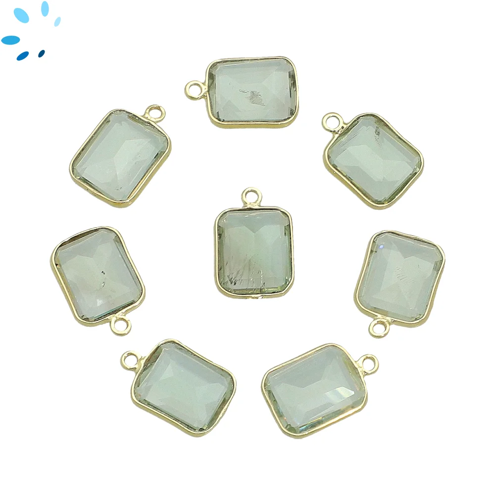 Green Amethyst Rectangle Bezel Charm Pendant 14x10mm - 18k Gold Plated Sterling Silver - Set of 4