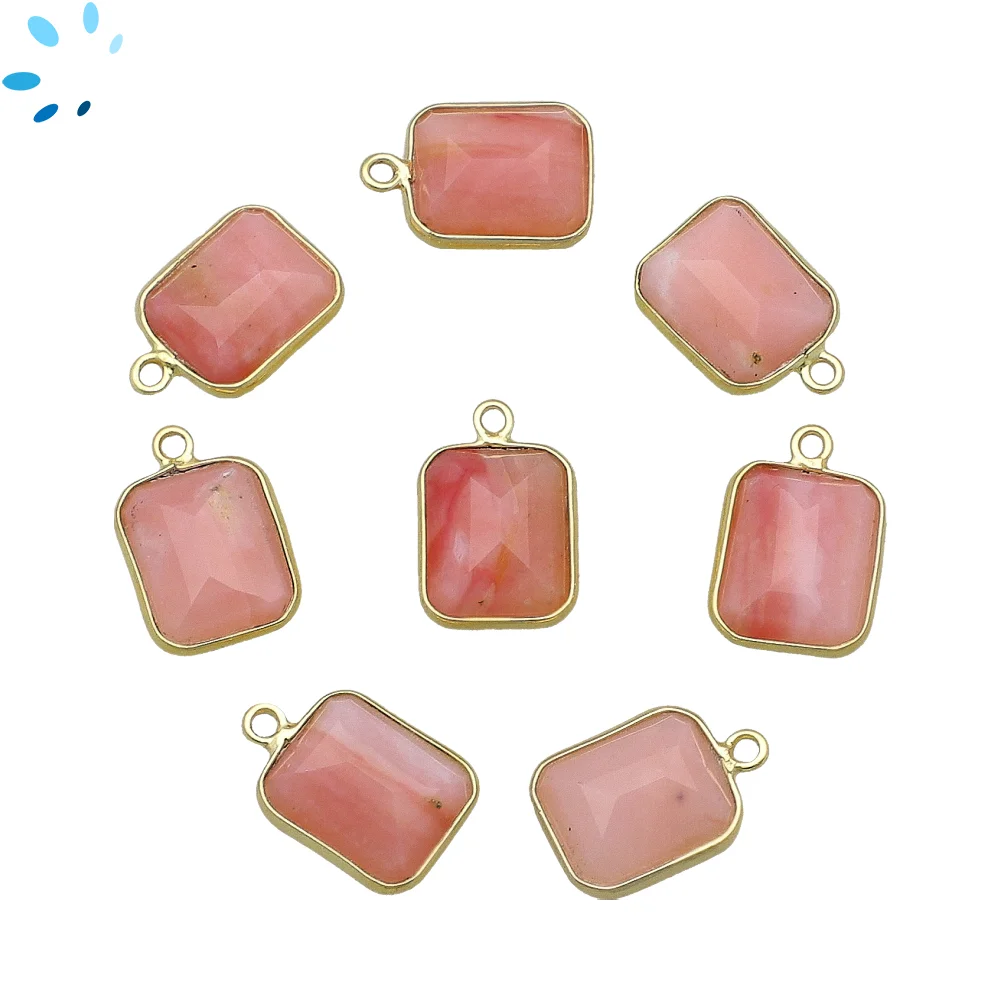 Pink Opal Rectangle Bezel Pendant Charm 14x10mm - 18k Gold Plated Sterling Silver - Set of 4