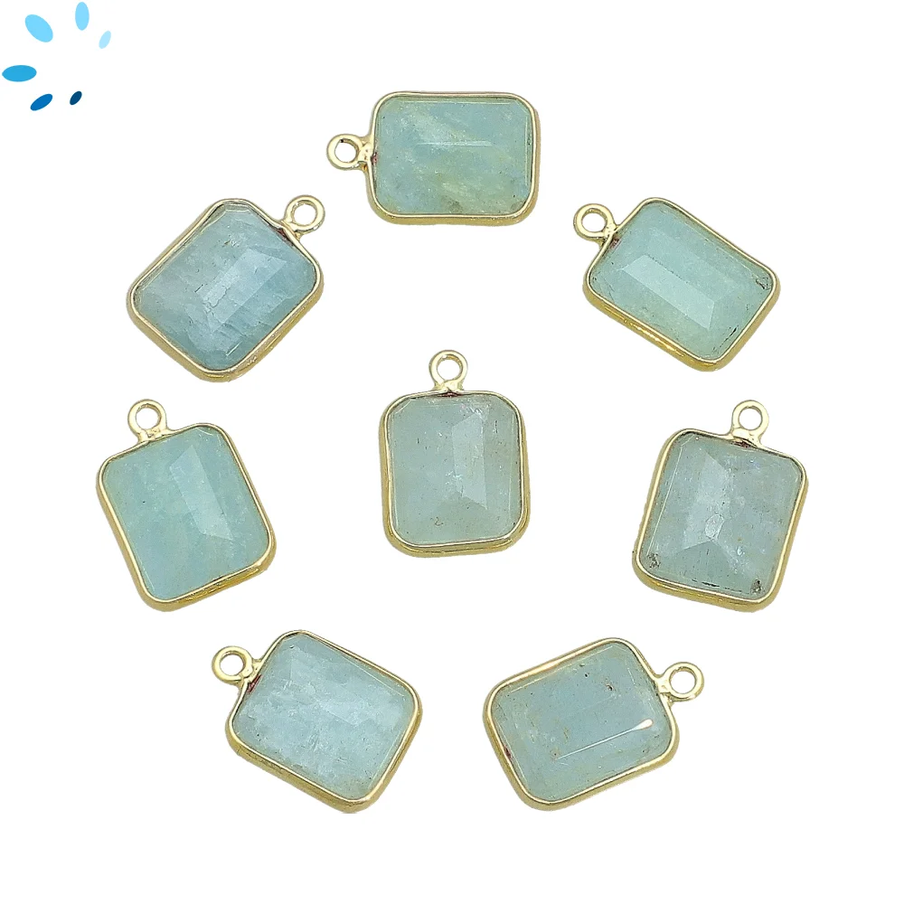 Aquamarine Rectangle Bezel Charm Pendant 14x10mm - 18k Gold Plated Sterling Silver - Set of 4