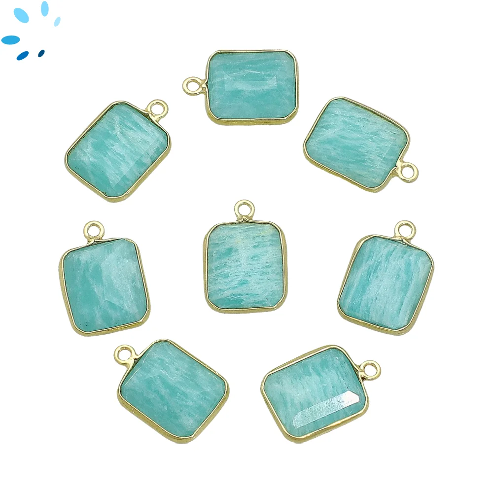 Amazonite Rectangle Bezel Pendant Charm 14x10mm - 18k Gold Plated Sterling Silver - Set of 4