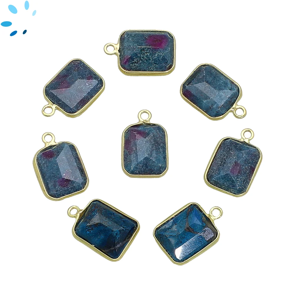 Ruby Zoisite Rectangle Bezel Charm Pendant 14x10mm - 18k Gold Plated Sterling Silver - Set of 4