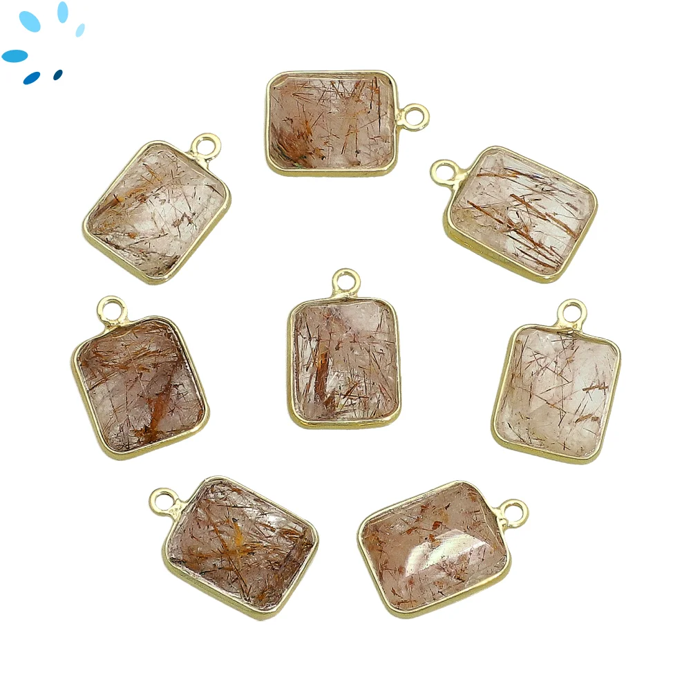 Copper Quartz Rectangle Bezel Pendant Charm 14x10mm - 18k Gold Plated Sterling Silver - Set of 4